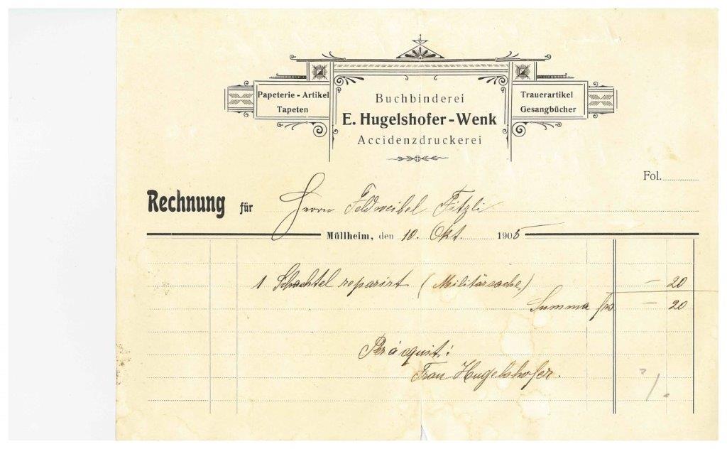 Rechnung, Hugelshofer, Buchbinder 1908