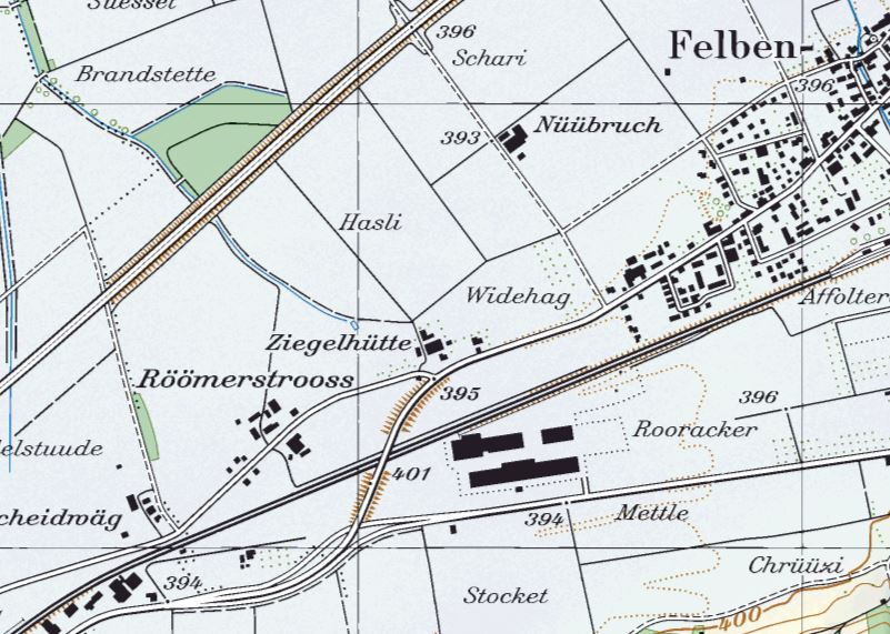 Der Begriff „Römerstrasse“ ist östlich von Frauenfeld erhalten geblieben. Ein Ausschnitt aus einer älteren Karte der Bürgergemeinde Frauenfeld weist den Namen gleich doppelt auf: als Flurname und als Bezeichnung für eine Häusergruppe. Beides liegt nördlich des Scheidwegs zwischen Felben – Wellhausen und Frauenfeld.