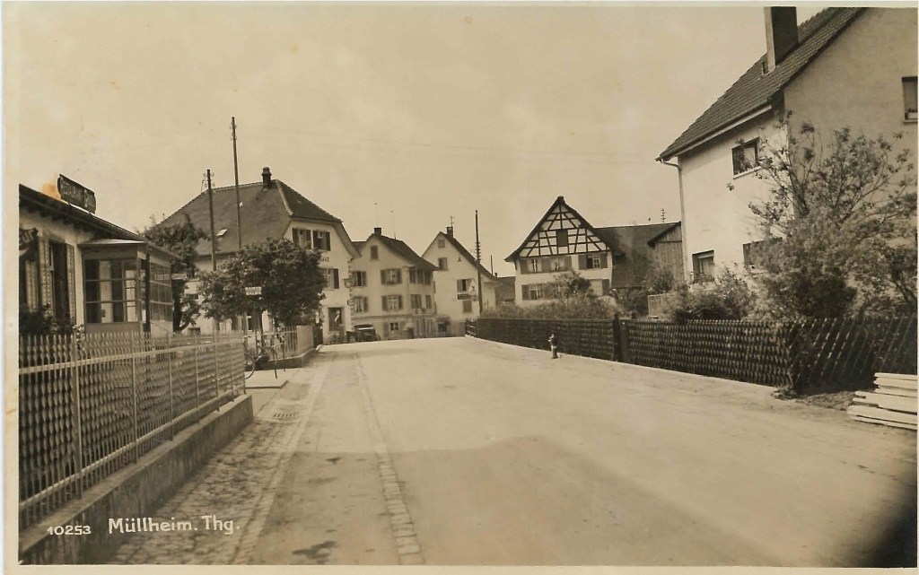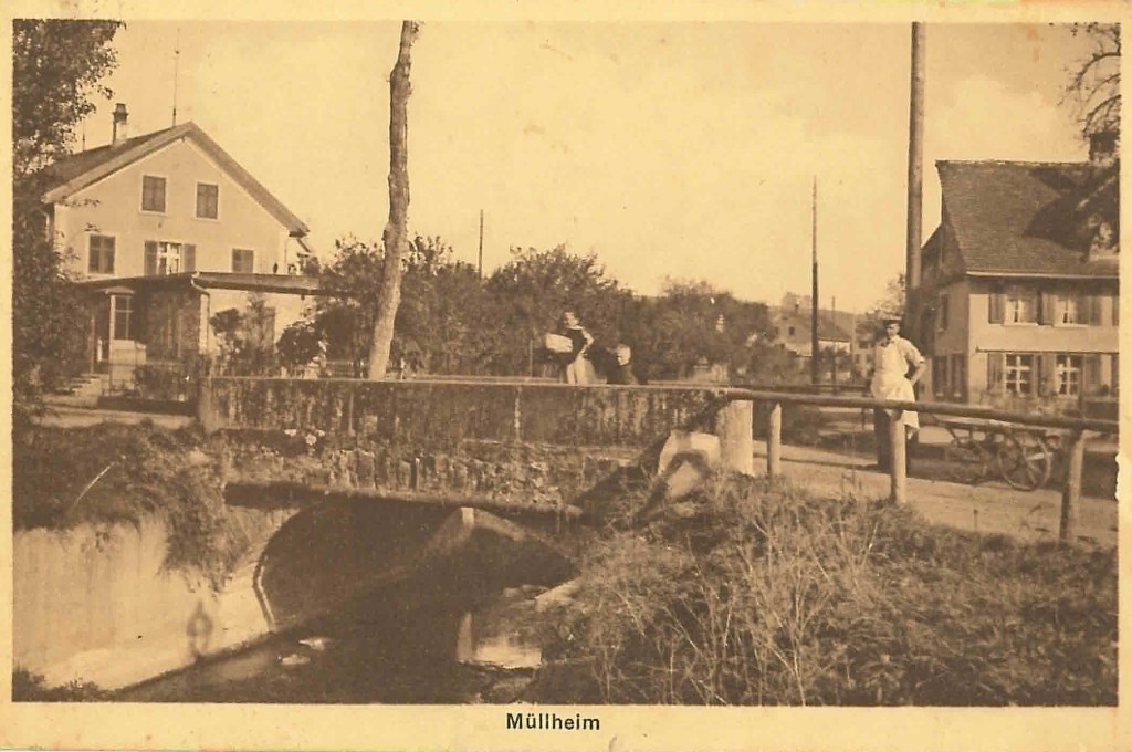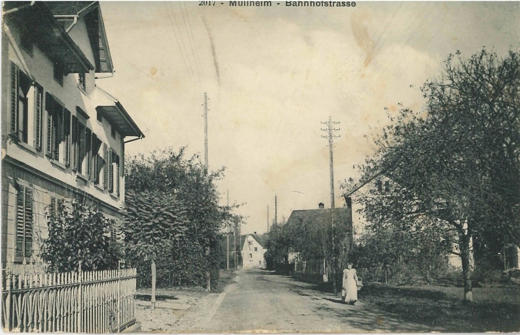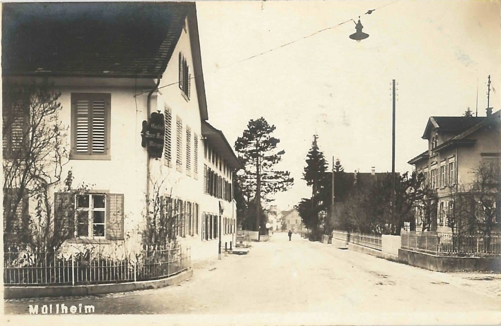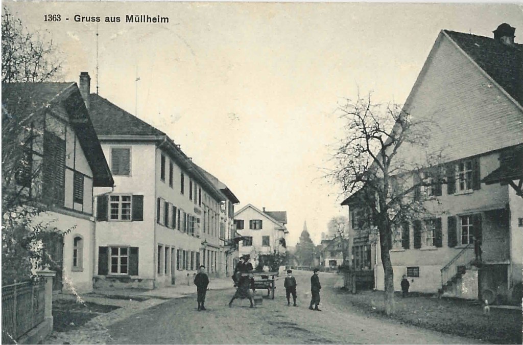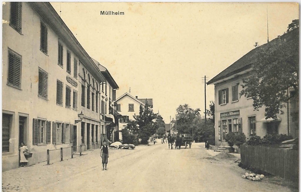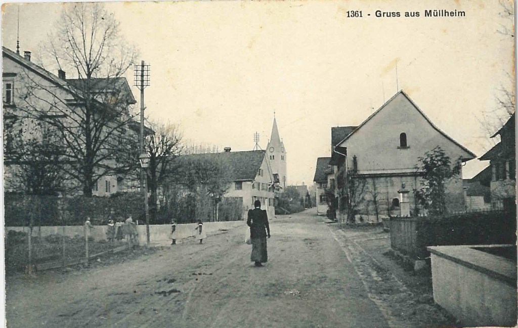 Kirche von Müllheim auf einer Postkarte mit Stempel 1905Postauto beim VolgDas erste Schulzimmer Müllheims befand sich im linken unteren Teil dieses Gebäudes. Der Rigelbau rechts war ein Bauernhof.Autounfall auf der OchsenkreuzungRosengasse. Das Haus steht heute nicht mehr.Heute: Parkplatz vor dem Coop