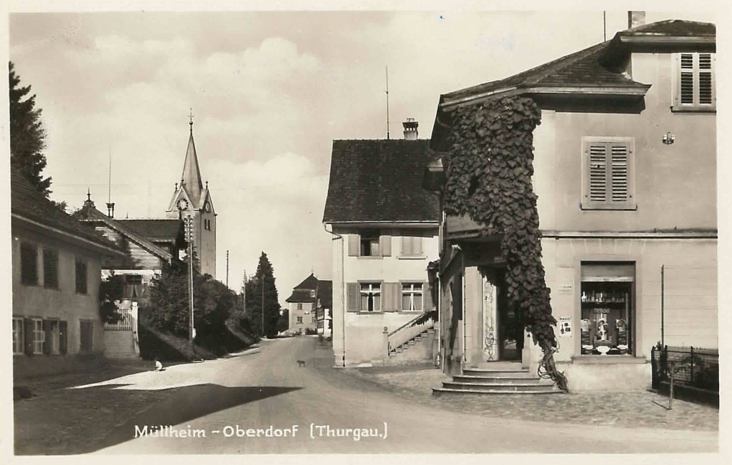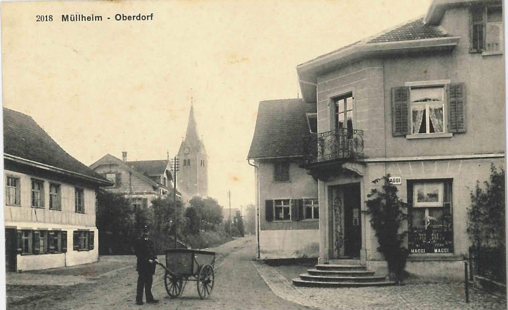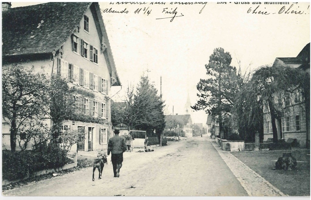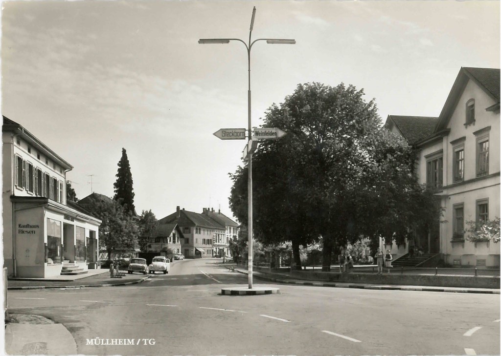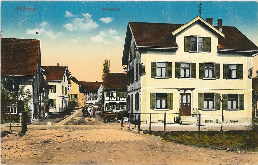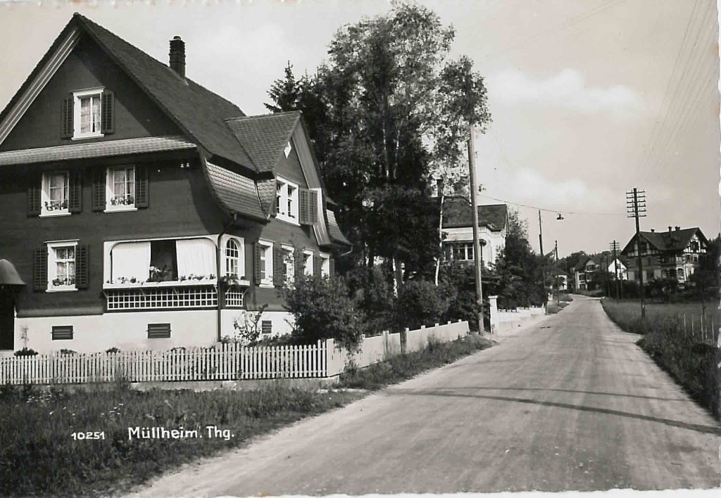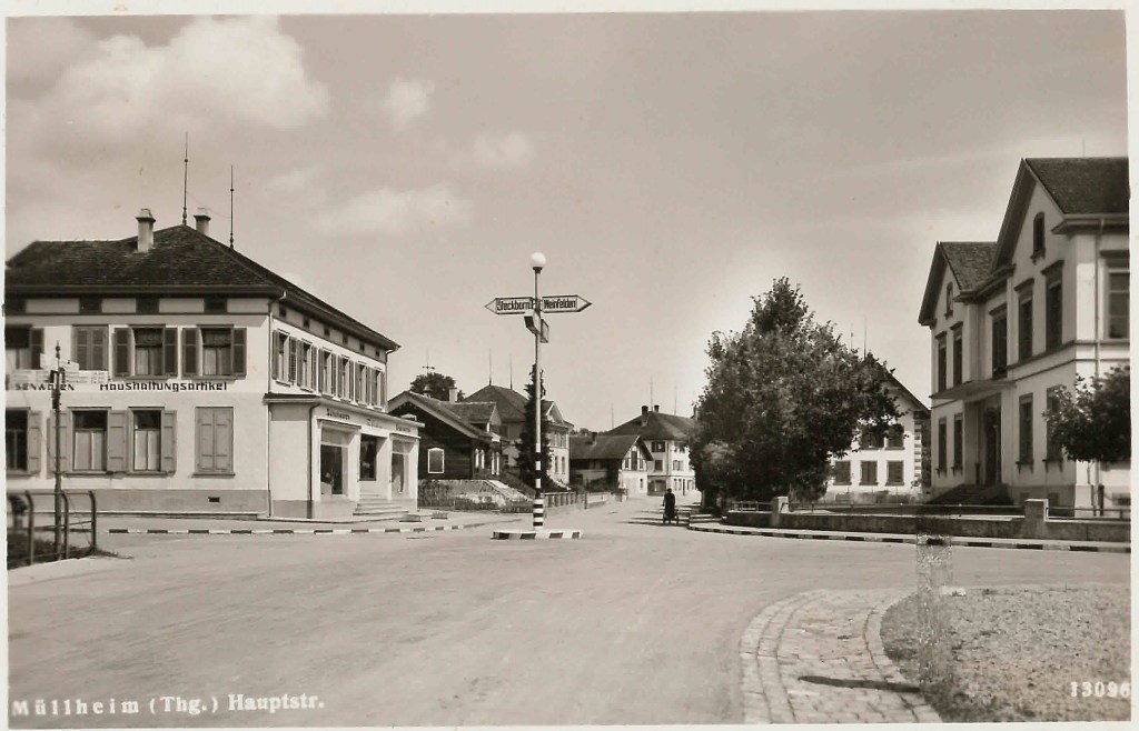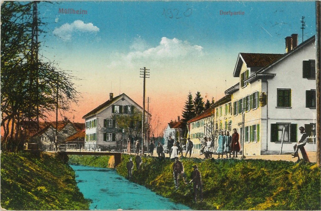 Kirche von Müllheim auf einer Postkarte mit Stempel 1905Postauto beim VolgDas erste Schulzimmer Müllheims befand sich im linken unteren Teil dieses Gebäudes. Der Rigelbau rechts war ein Bauernhof.Autounfall auf der OchsenkreuzungRosengasse. Das Haus steht heute nicht mehr.Heute: Parkplatz vor dem Coop