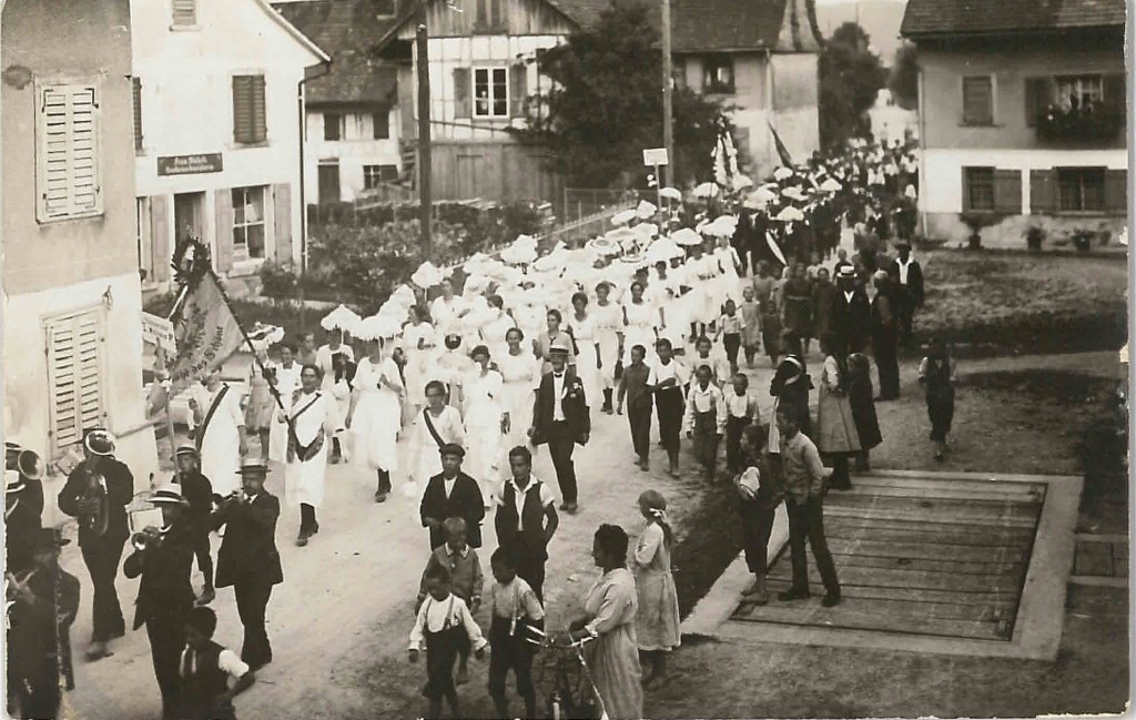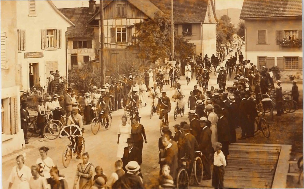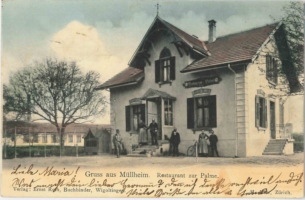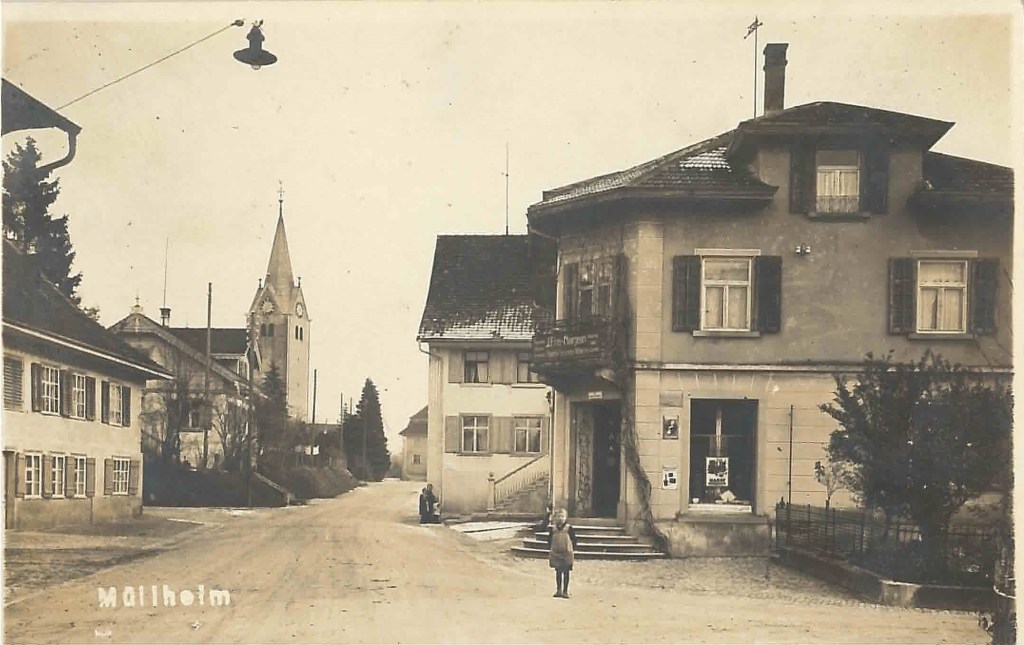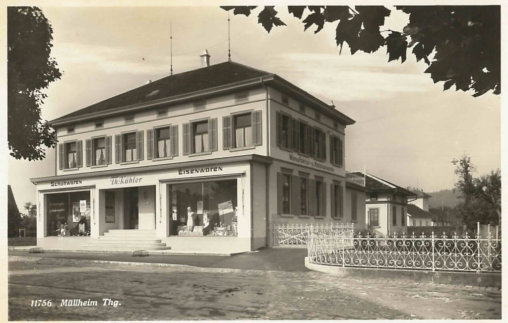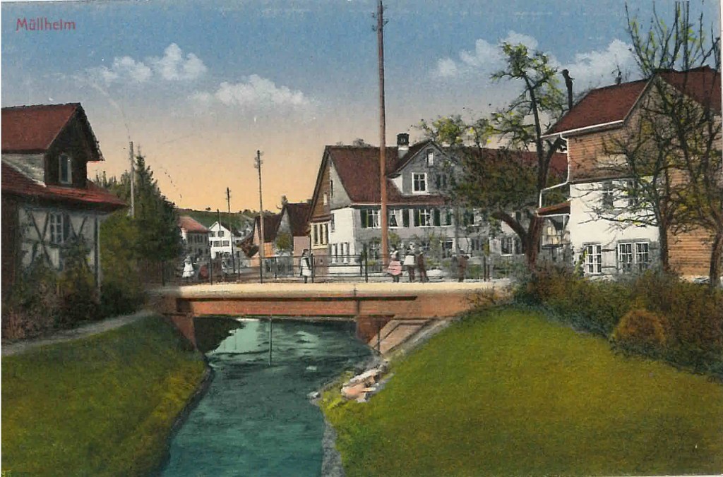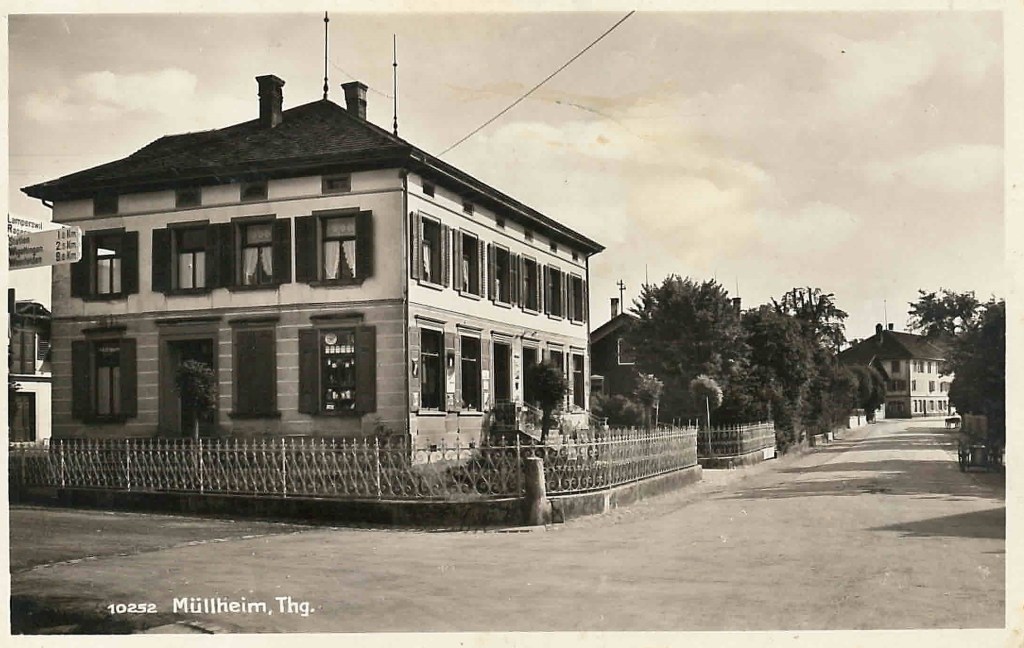 Kirche von Müllheim auf einer Postkarte mit Stempel 1905Postauto beim VolgDas erste Schulzimmer Müllheims befand sich im linken unteren Teil dieses Gebäudes. Der Rigelbau rechts war ein Bauernhof.Autounfall auf der OchsenkreuzungRosengasse. Das Haus steht heute nicht mehr.Heute: Parkplatz vor dem Coop