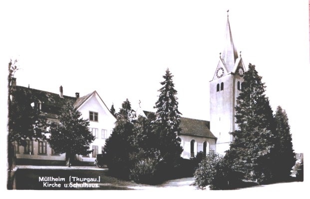 Kirche und Oberes Schulhaus, Postkarte von 1931